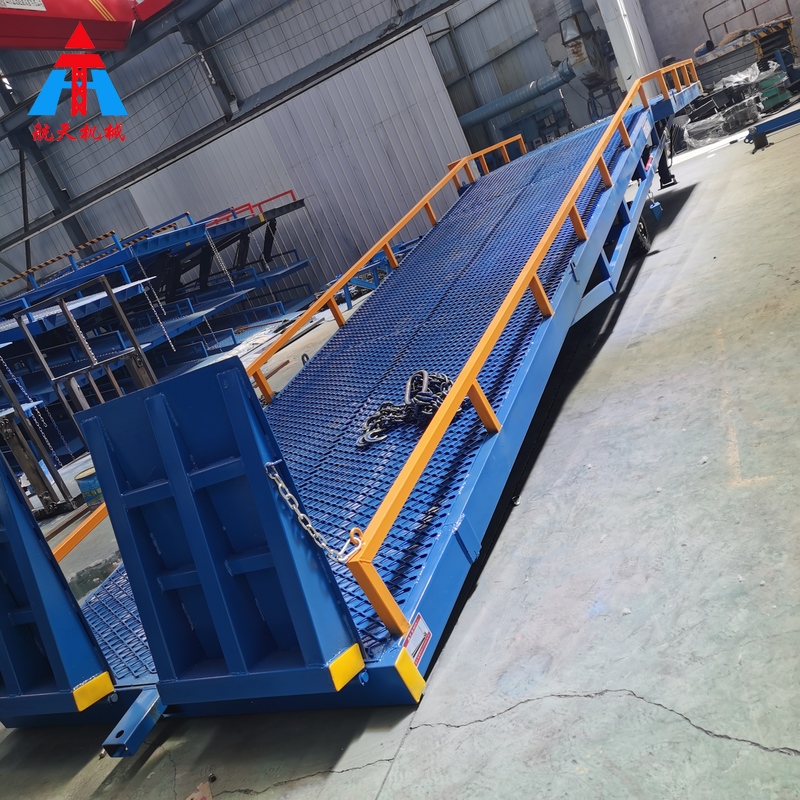 移動式液壓登車橋采用中德合資技術,按承載能力分為:6、8、10、12、20噸,廣泛應用于無裝卸設備的貨臺及流動裝卸場所,是與叉車配合使用的貨物裝卸專用輔助設備。有了它,叉車能直接從地面駛入汽車車廂內部進行批量裝卸作業。產品采用人工液壓動力,不需接動力電源。只需單人操作,即可實現貨物的安全快速裝卸。它可使企業減少大量勞動力,成倍提高裝卸作業效率,加快貨物流通速度,獲取更大經濟效益。