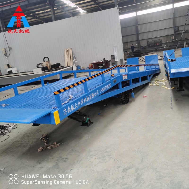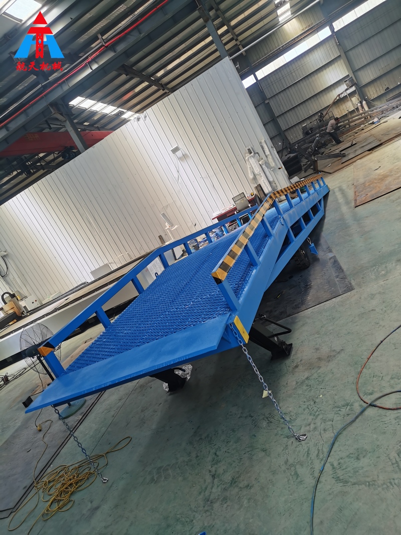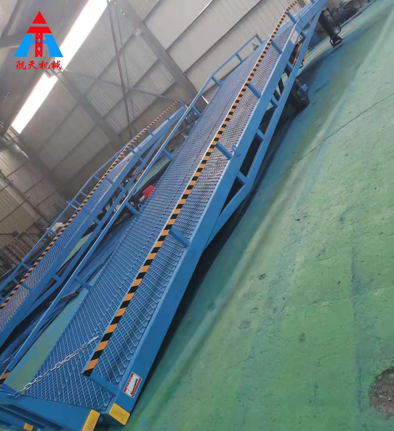 移動式登車橋是與叉車配合使用的貨物裝卸輔助設備,可根據汽車車廂的高低調節高度,叉車可以直接通過本設備駛入車廂內部進行貨物的批量裝卸,僅需單人作業,即可實現貨物的快速裝卸。它使企業減少大量勞力,提高工作效率,獲取更大經濟效益。
