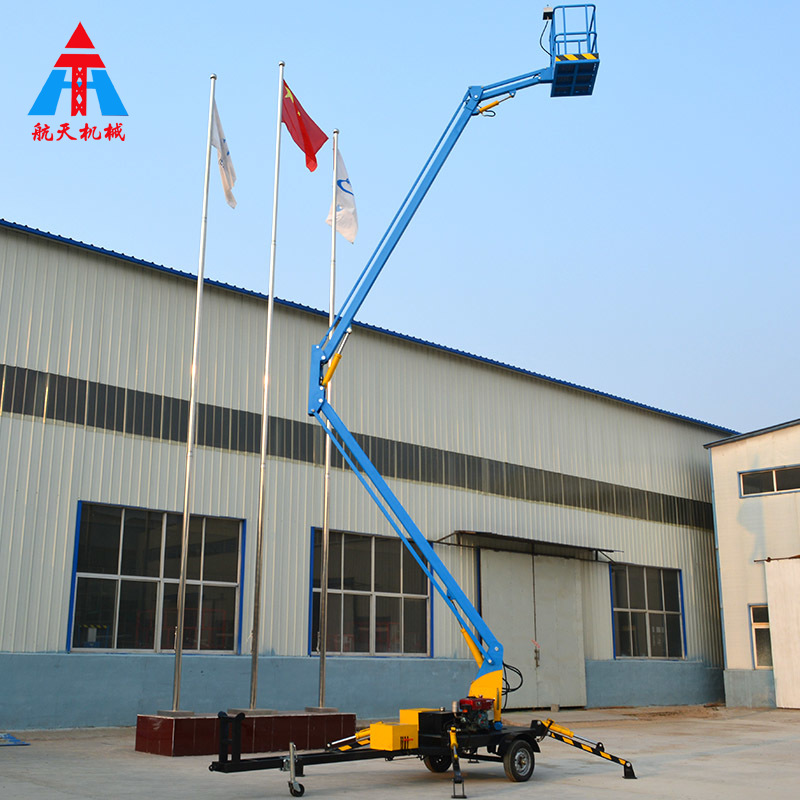 折臂式升降機(jī),是一種360°旋轉(zhuǎn)升降送行人或貨物的液壓升降工具。折臂式升降機(jī)具有移動(dòng)方便、操作簡(jiǎn)單、作業(yè)面大、平衡性能好等特點(diǎn),在路面不平的情況下,即能四腿同時(shí)支撐,也可單腿支撐,便于操作使用,因而廣泛用于車站、碼頭、公共建筑等需從事高空作業(yè)的行業(yè)和領(lǐng)域。折臂式高空作業(yè)車廣泛適用于市政、電力、路燈、廣告、通訊、攝影、園林、交通、碼頭、機(jī)場(chǎng)港口、大型工礦企業(yè)等行業(yè)的安裝維修及登高作業(yè)。適用于野外各種崎嶇地形,空間作業(yè)范圍廣,主要用于建筑,橋梁建設(shè)、船舶制造、機(jī)場(chǎng)、礦山、港口碼頭、通信和電力設(shè)施的施工及戶外廣告的工程機(jī)械設(shè)備。