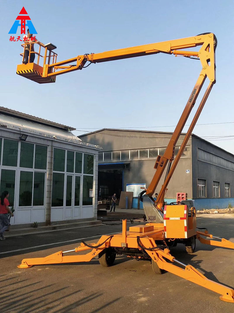 折臂式升降機,是一種360°旋轉升降送行人或貨物的液壓升降工具,折臂式升降機具有移動方便、操作簡單、作業面大、平衡性能好等特點,在路面不平的情況下,即能四腿同時支撐,也可單腿支撐,便于操作使用,因而廣泛用于車站、碼頭、公共建筑等需從事高空作業的行業和領域。折臂式高空作業車廣泛適用于市政、電力、路燈、廣告、通訊、攝影、園林、交通、碼頭、機場港口、大型工礦企業等行業的安裝維修及登高作業。適用于野外各種崎嶇地形,空間作業范圍廣,主要用于建筑,橋梁建設、船舶制造、機場、礦山、港口碼頭、通信和電力設施的施工及戶外廣告的工程機械設備。