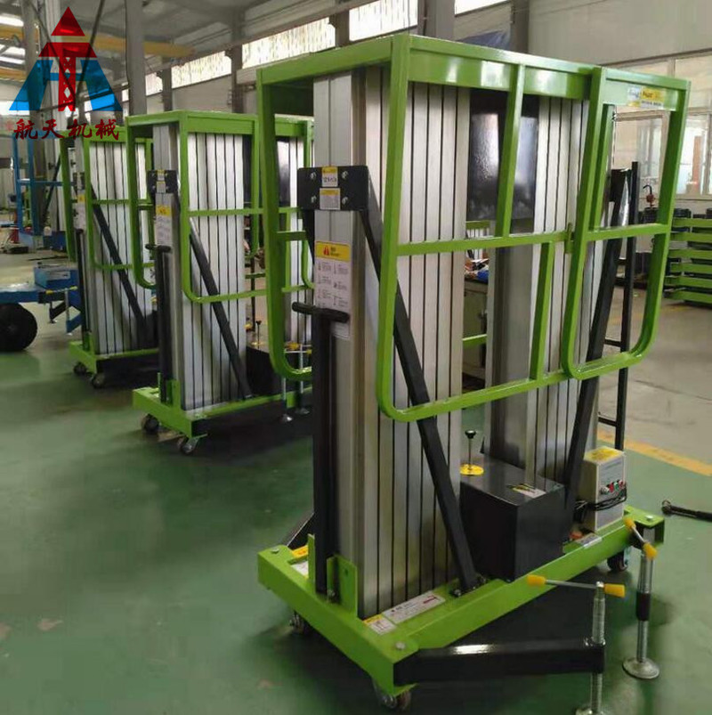 鋁合金式升降機是移動設備,采用了鋁合金型材,由于型材強度高,使升降機的偏轉與擺動小。它輕盈的外觀,能在小的空間內發揮高的作業性能。使單人高空作業變得輕而易舉,可以移動進行作業。