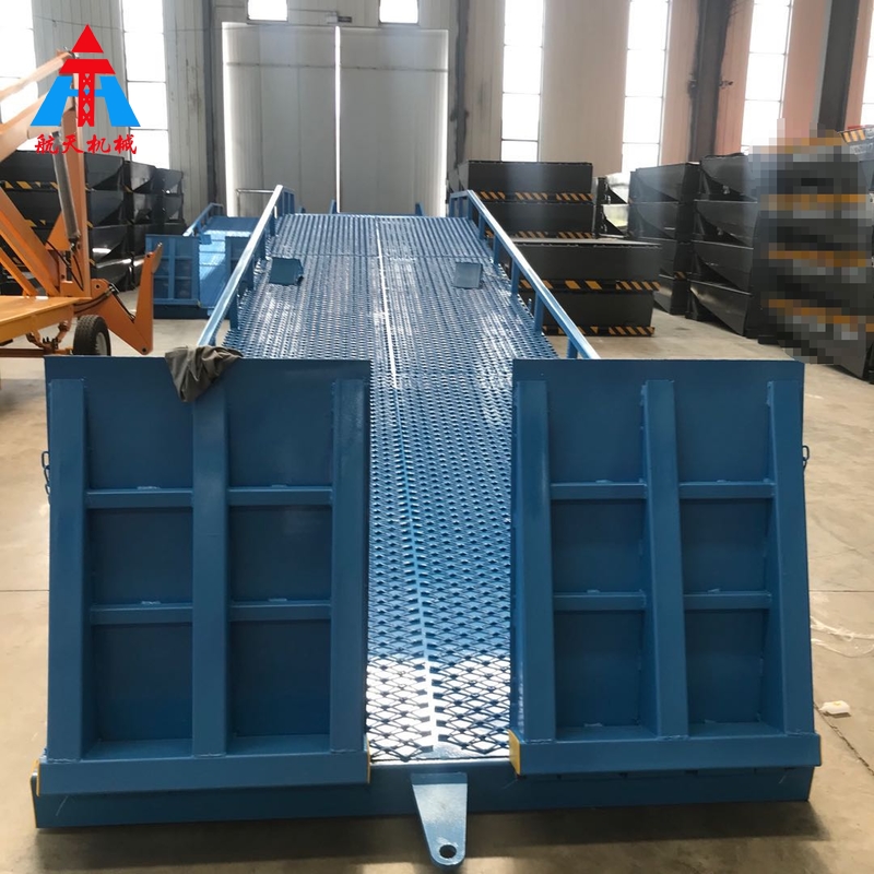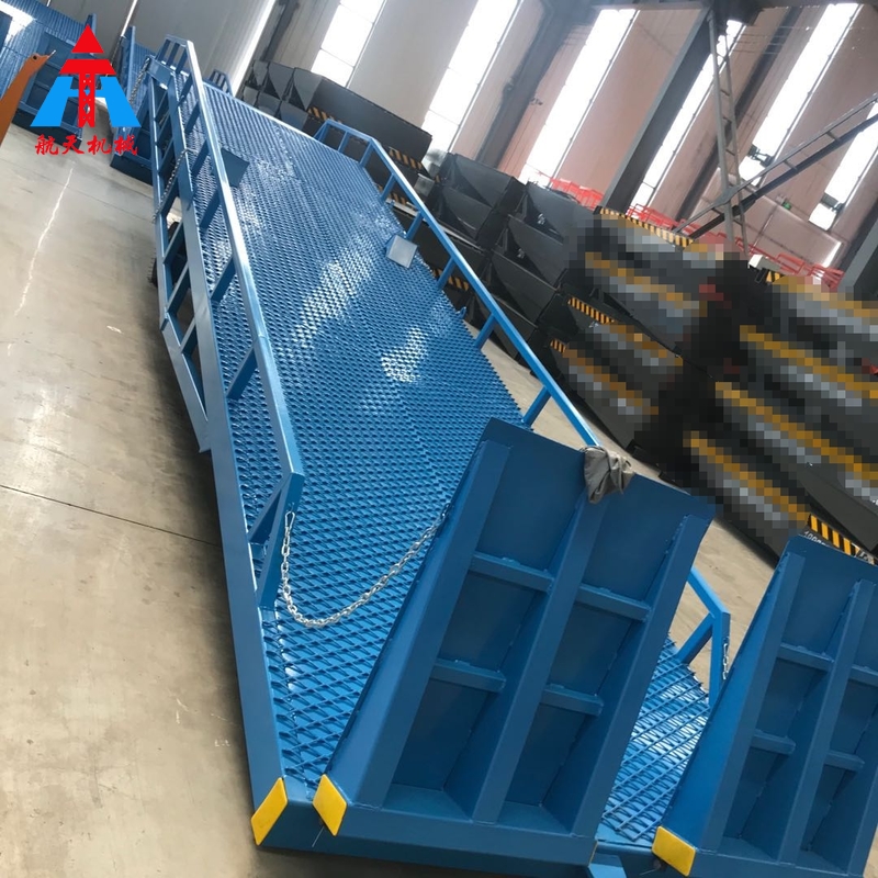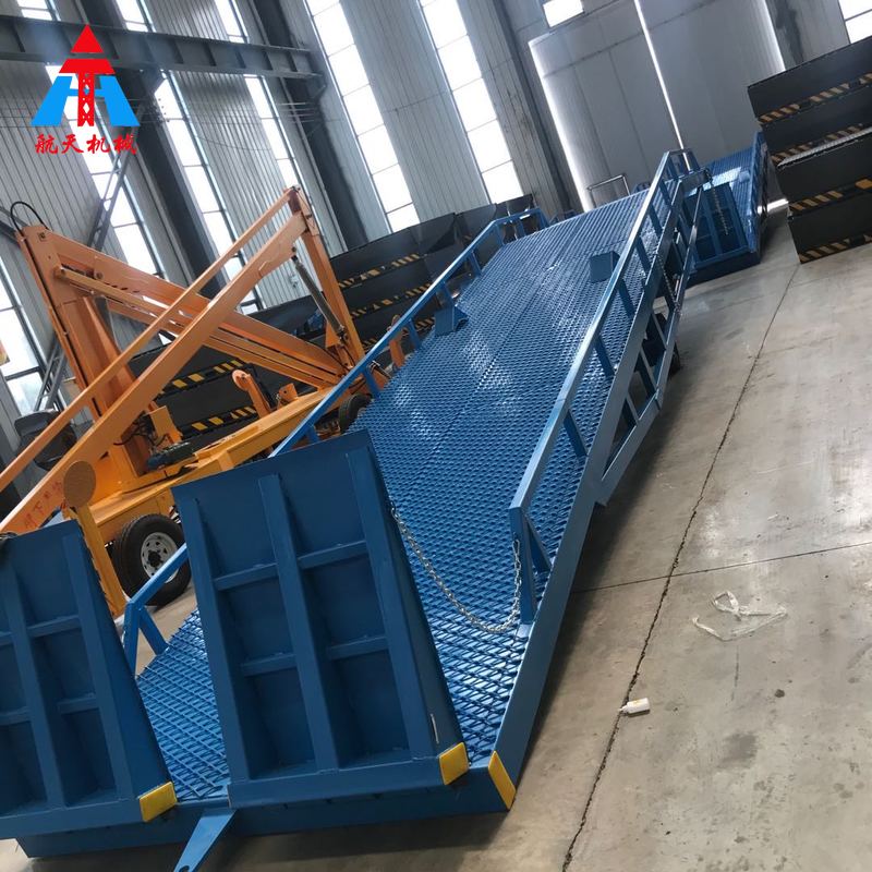移動登車橋在現代物流現場已是一非常易見的結構形式,它是企業物流鏈的起點與終點,是企業快速、安全周轉產品及貨物的一個裝卸貨操作平臺。 裝卸貨操作平臺的高度固定,但來往運輸車廂的廂地高度不一,運輸車輛與裝卸貨站臺之間總是形成一定的高度落差或間隙。造成搬運叉車不能進出運輸車輛直接裝卸貨物。運用登車橋提供可靠的連接。使搬運叉車能夠安全、快速地進出運輸車輛進行裝卸貨作業。使用過程平穩可靠,安全性能高,裝卸貨物時節約了大量時間,省卻了大量人力,使裝卸貨物大大的提高了效率。臺面采用特制的菱形網格板有可靠的強度,能保證長期使用而不變形。它的菱形網狀結構,充分保證了卓越的防滑性能,使叉車有更好的爬坡性和可操縱性,即使在雨、雪天氣,仍能保證正常使用。