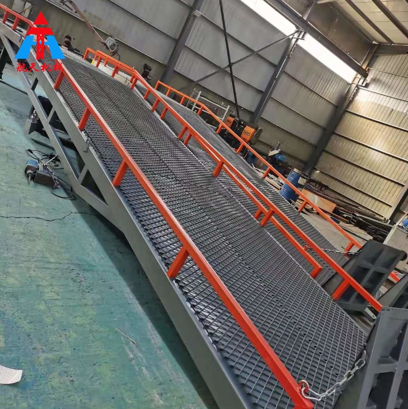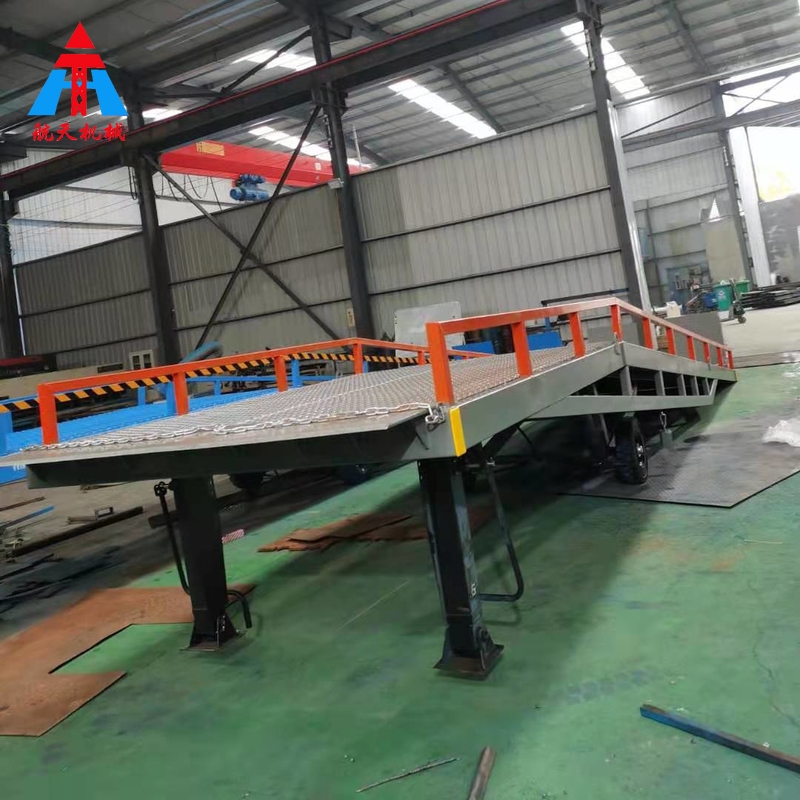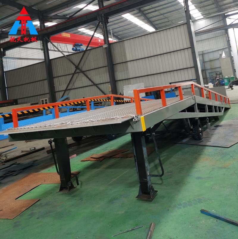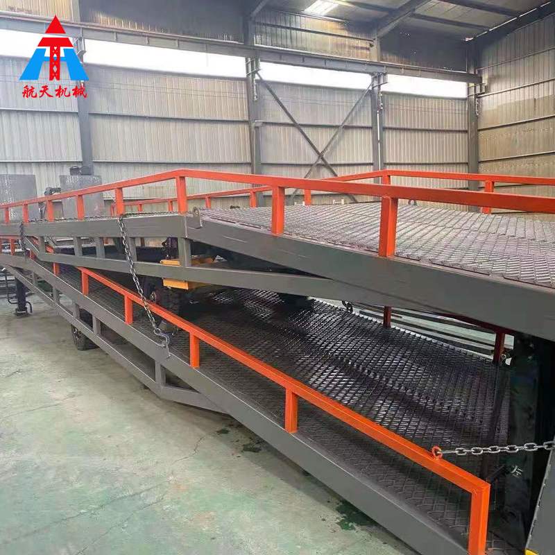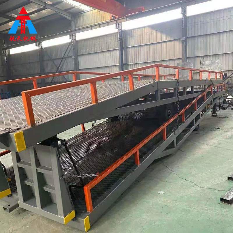 移動式液壓登車橋是與叉車配合使用的貨物裝卸輔助設備,可根據汽車車廂的高低調節高度,叉車可以直接通過本設備駛入車廂內部進行貨物的批量裝卸,僅需單人作業,即可實現貨物的快速裝卸。它使企業減少大量勞力,提高工作效率,獲取好的經濟效益。