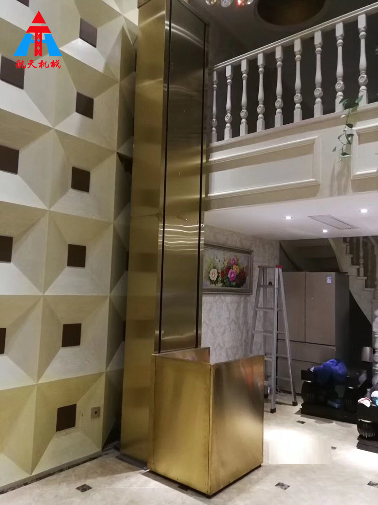 曳引家用電梯或別墅電梯:井道及地坑、轎廂、層站部分;主要部件:曳引系統、導向系統、門系統、轎廂、重量平衡系統、電器控制系統、安全保護系統,電氣方面的安全保護在電梯的各個運行環節都有,這種電梯同小區電梯相同。安靜平穩、價格經濟、乘坐舒適,方便殘疾人和老年人使用的家居電梯。