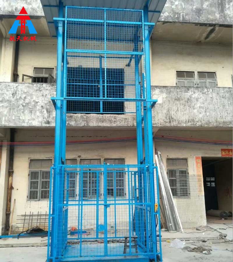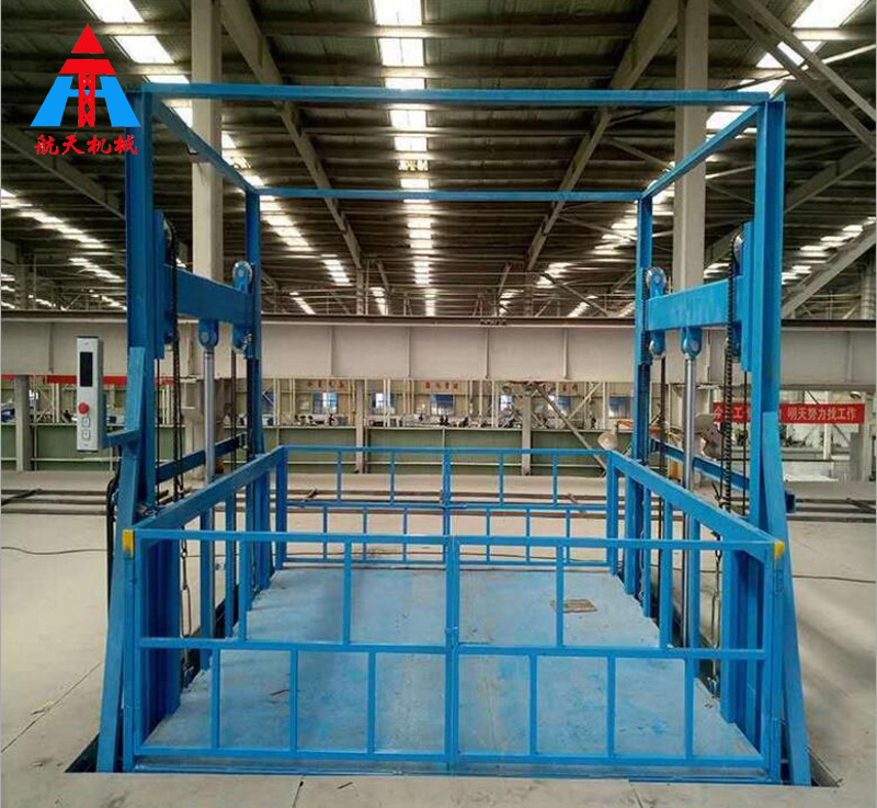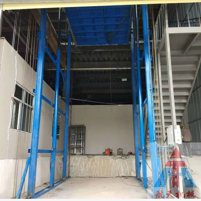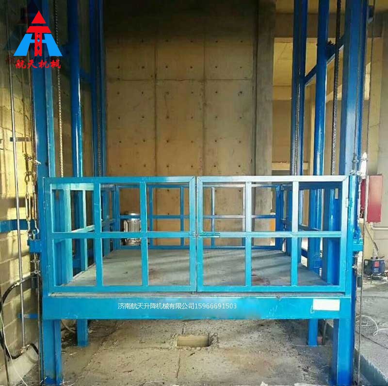 【描述】:液壓升降貨梯主要包括升降裝置、導軌裝置和換帶裝置三部分,其中升降裝置即升降臺面轎廂,導軌裝置主要是起到牽引作用,使設備按規定運行更加暢通,換帶裝置是當升降機要過門時用來切換軌道之用。
