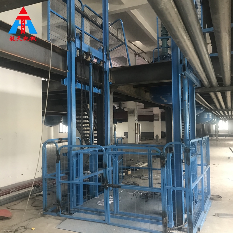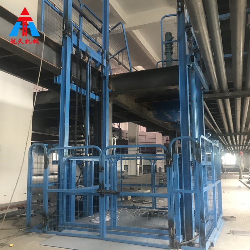 液壓升降貨梯是用于貨物升降的液壓升降機械設備,釆用液壓站作為主要動力,液壓油缸作為支撐,T型導軌作為軌道,通過特種鏈條和滾輪傳動,保證轎箱運行安全穩定。無需地坑和機房,特別適合于有地下室、倉庫改造、新建貨架等,具有安裝維修方便、美觀、安全、操作方便,具體根據現場的實際環境生產。