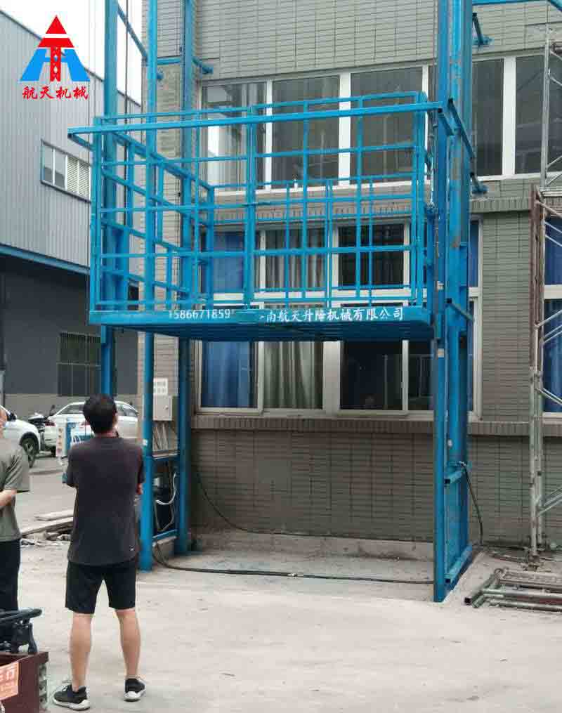 【描述】:室外貼墻貨梯是常用于樓房或者車間、倉庫、廠房等,一般是采用液壓油缸和泵站,產品液壓系統可設置防墜系統,四角設置帶有平衡油絲繩,設有互動連鎖功能,液壓貨梯可多點設置操作按鈕裝置,能夠實現多點控制。